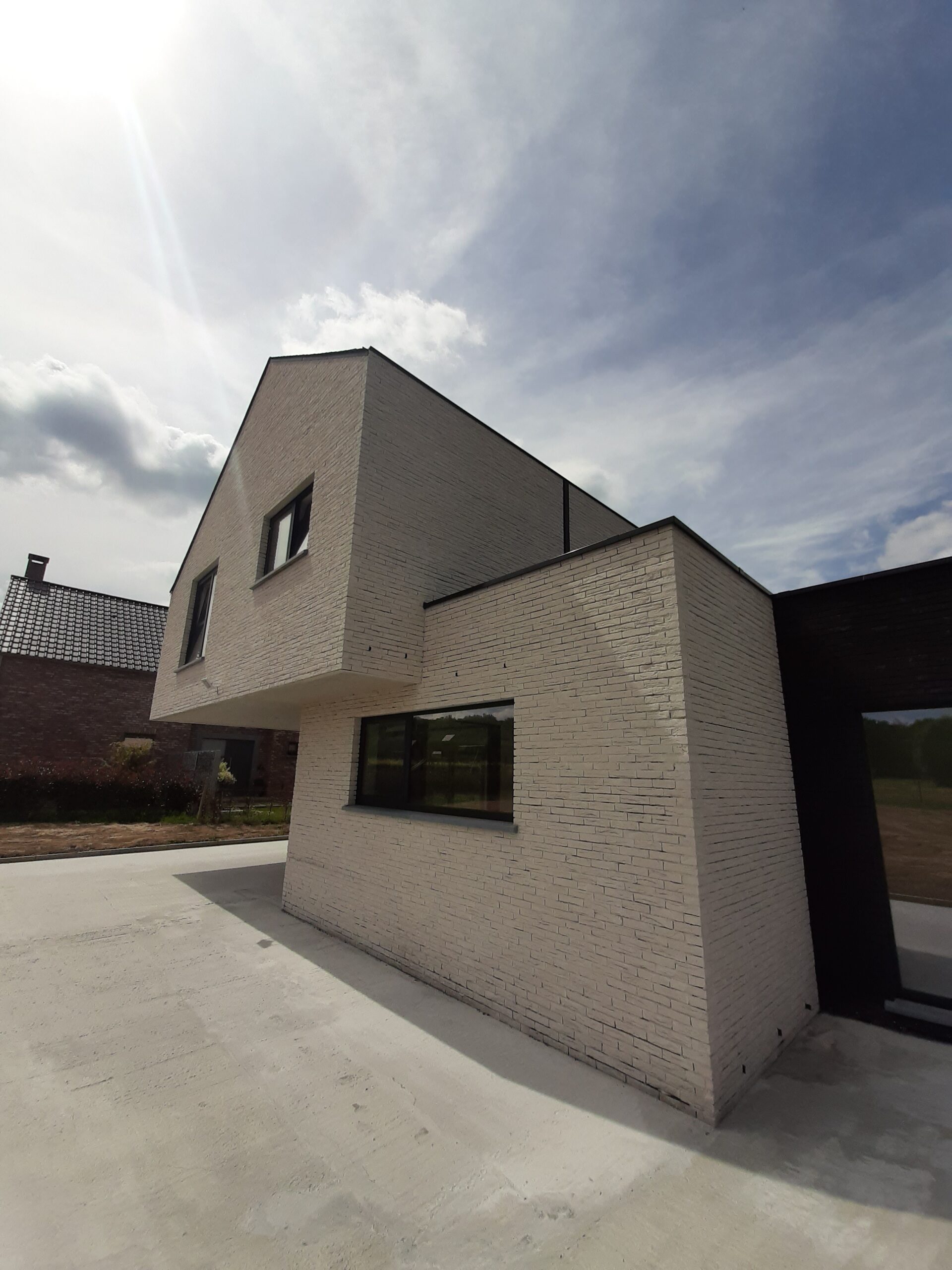 Au milieu d’un lotissement en zone rurale, l’habitation se joue de l’ensoleillement et des orientations. Briques collées en blanc et noir, les volumes se distinguent sans effets ostentatoires. L’architecture du détail…