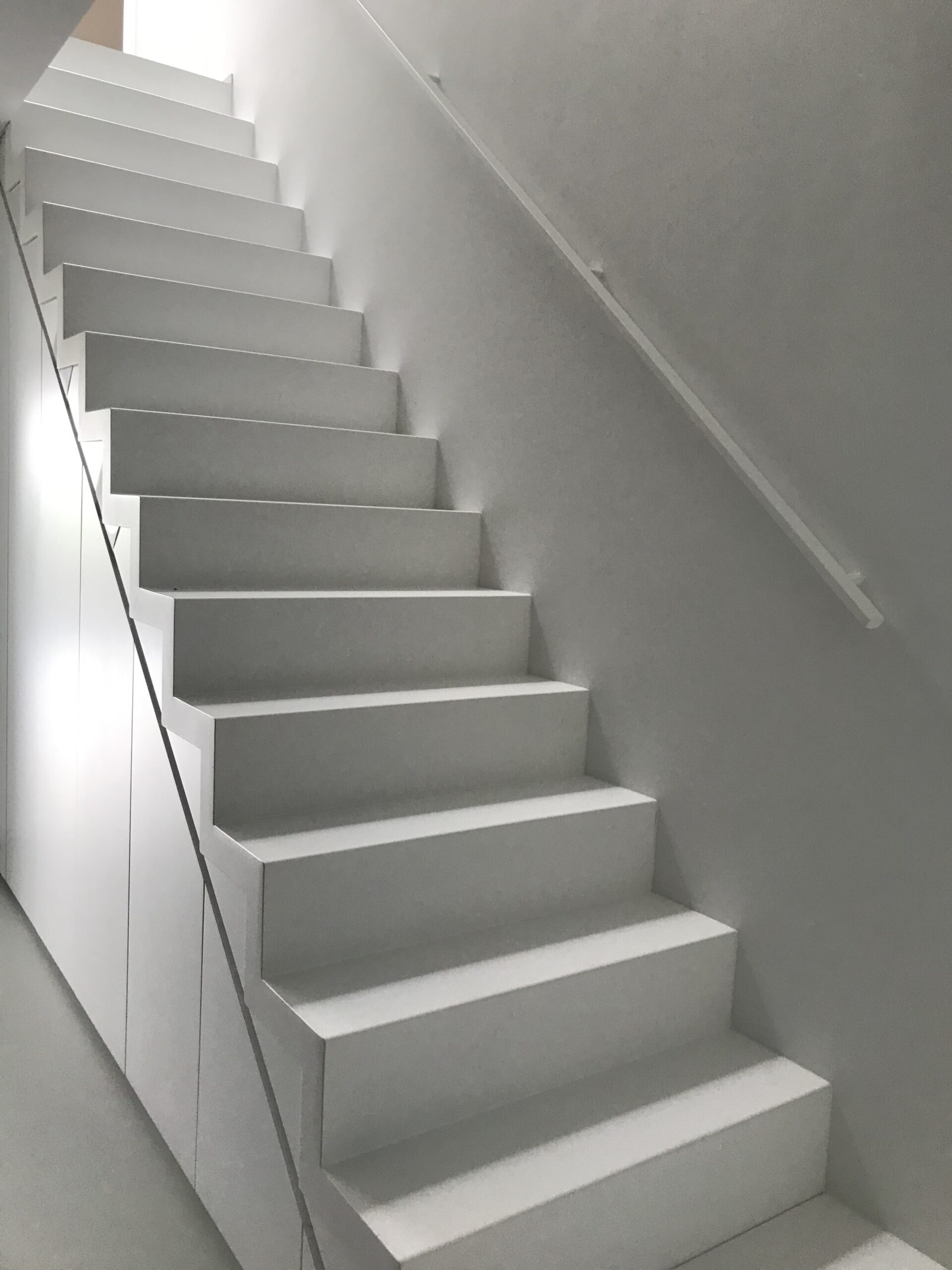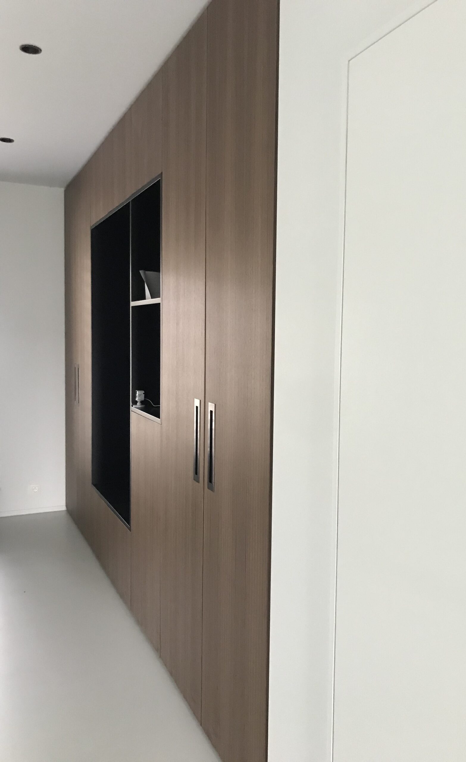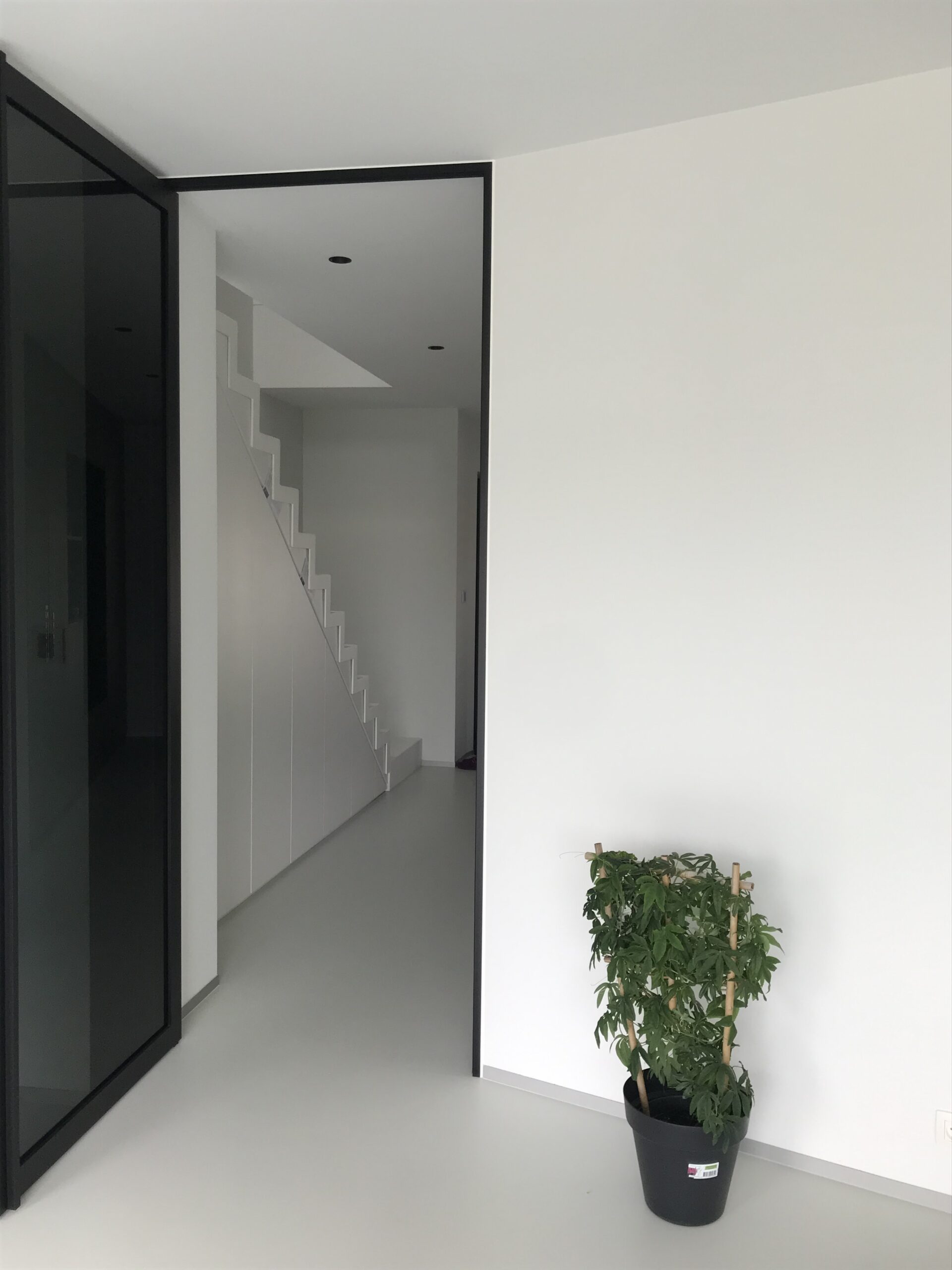 Coincé dans un angle de rue entre des habitations post-modernes, le projet des clients se voulait intimiste côté public, pour s’ouvrir côté jardin. Deux cubes entrecroisés se développent pour créer une ambiance contemporaine dont les clients ne se lassent pas…